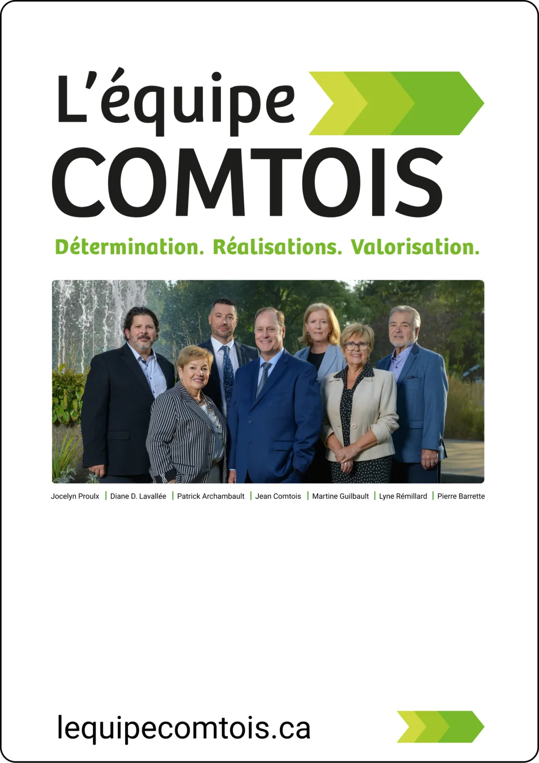 Jean Comtois est maintenant à la préretraite. Il se consacre pleinement à la gestion de la municipalité. C’est l’homme du renouveau ! Il n’a qu’une volonté ; continuer à faire avancer les dossiers et de les régler efficacement pour le bien de toutes les générations de citoyens.
